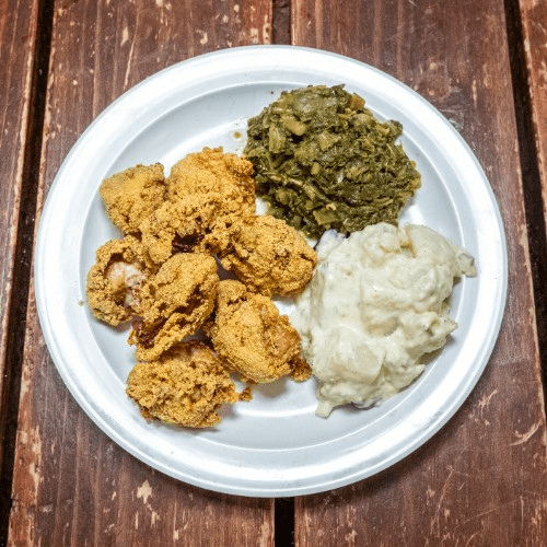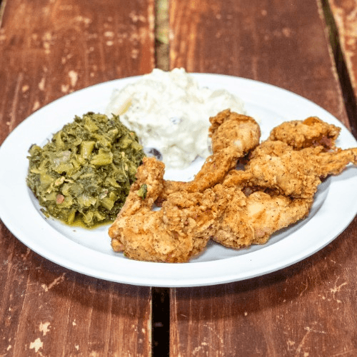 Hand-cut, hand-seasoned, in our cornmeal mix, then fried to perfection