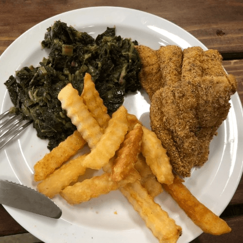 2 pieces of one choice of fish and fries: tilapia, basa, catfish, red snapper