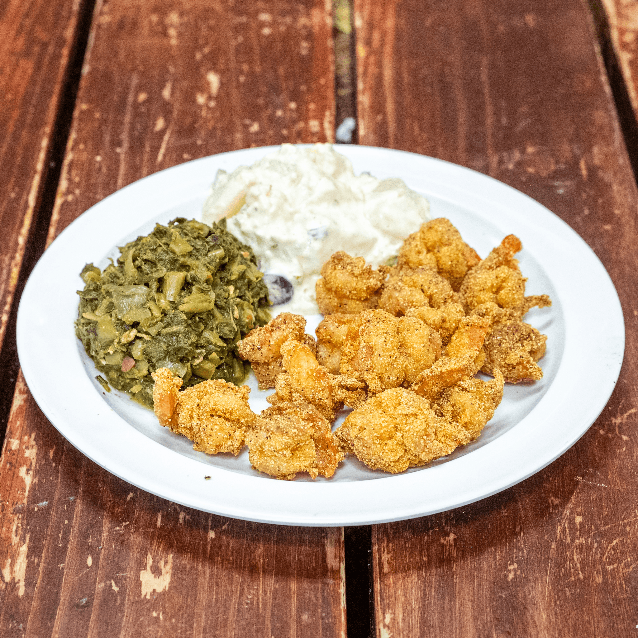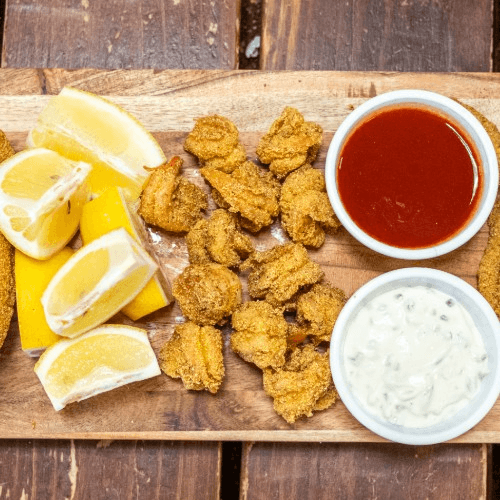 Hand-peeled, hand-seasoned, in our cornmeal mix, then fried to perfection