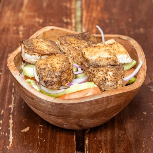 Tilapia fried or grilled with lettuce, tomatoes, onions, cucumbers, and dressing