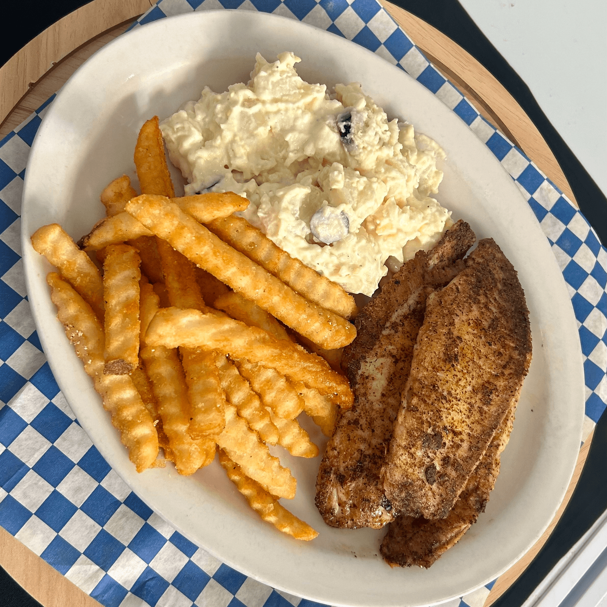 Hand-cut, hand-seasoned basa cooked to perfection, served with fries