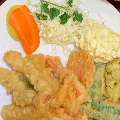 Meat and seafood are prepared and breaded then fried in pure vegetable oil. A la carte orders are served with soup, salad, and steamed rice.