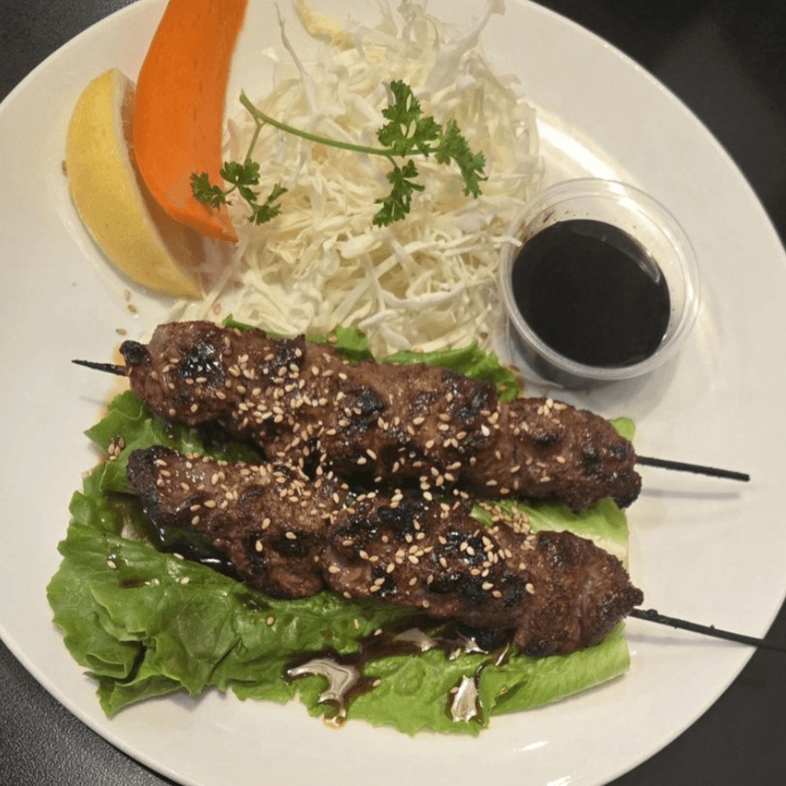 Two skewers, beef teriyaki