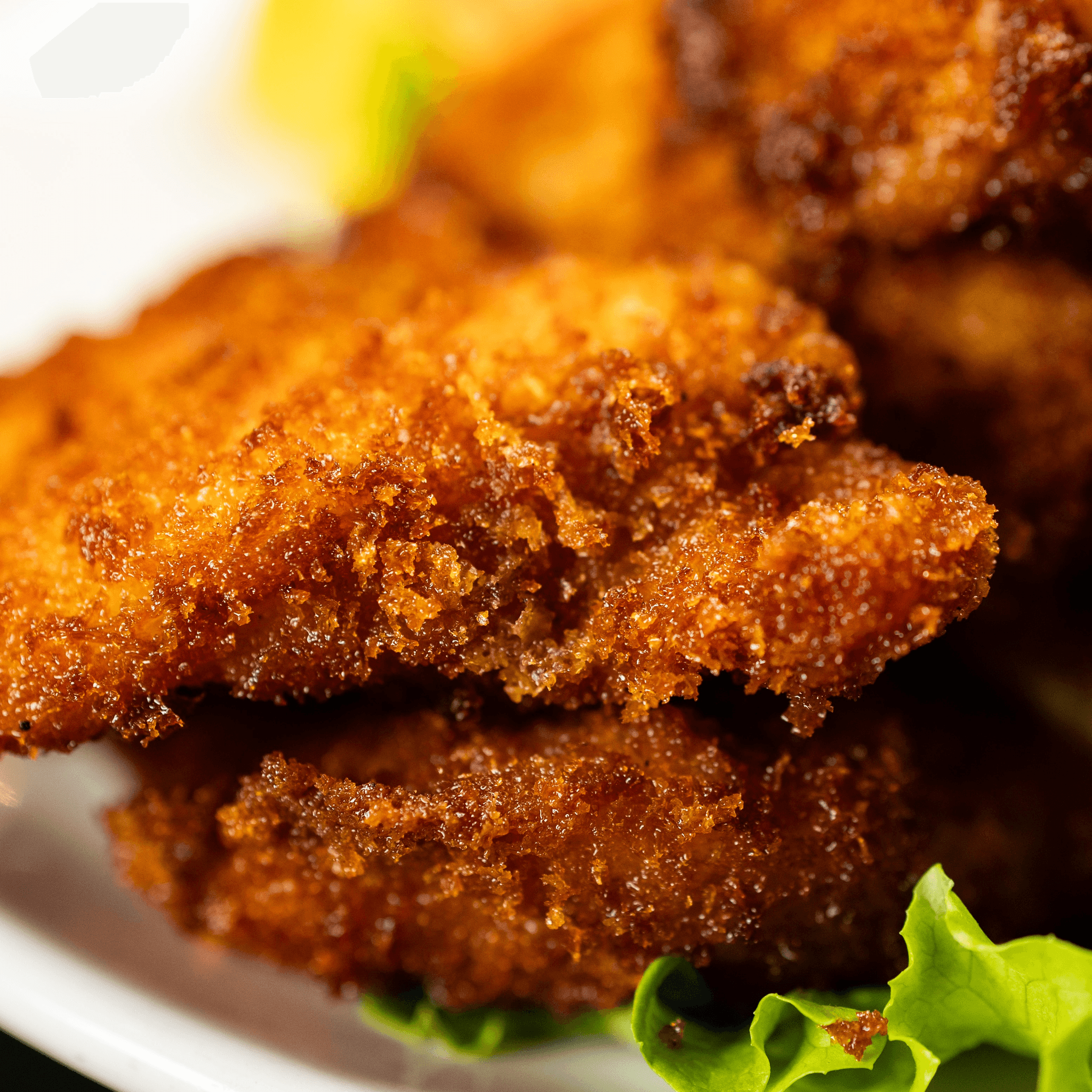 Meat and seafood are prepared and breaded, then fried in pure vegetable oil.